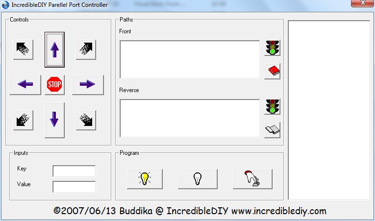 As we built a relay board to interface with "parallel port" in my earlier post. Today I'm going to talk about the control software for it. I wrote this software long time ago using Visual Basic 6 and inpout32.dll as the interface. I used this to control some modified toy cars as autonomous vehicles similar to automated guided vehicles (AGV). The path can be programmed to the software in realtime or in advance. So, the vehicle will follow the route as we need. You can download the program with source code from here.