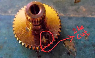 You can buy cheap servo motors from ebay for a price of less than a gear motor. But these servo motors can't be used for continuous motion. A simple modification can be done by removing the locking mechanism as in the below photos. I'm using a metal geared servo motor from ebay for this. You should also glue the potentiometer in the middle postion after cutting the lock in the gear. You can use different pulses with varying pulse width and frequency to get continuous motion in the clock wise and anti-clock wise directions.