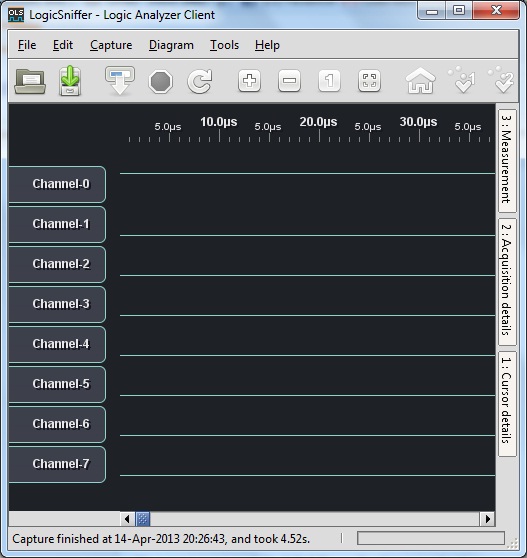 Now you can run "ols-0.9.6.1\run.bat" to run the logic analyzer. If you are using Linux, you can run it using "ols-0.9.6.1\run.sh" .