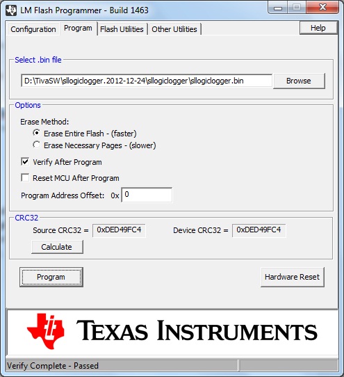 Then we have to flash the code into the launch pad. You can flash "sllogiclogger.bin" in the plugin to the launchpad using TI LM Flasher. If you are a linux user, you can refer to my previous post on flashing Stellaris Launchpad on linux.